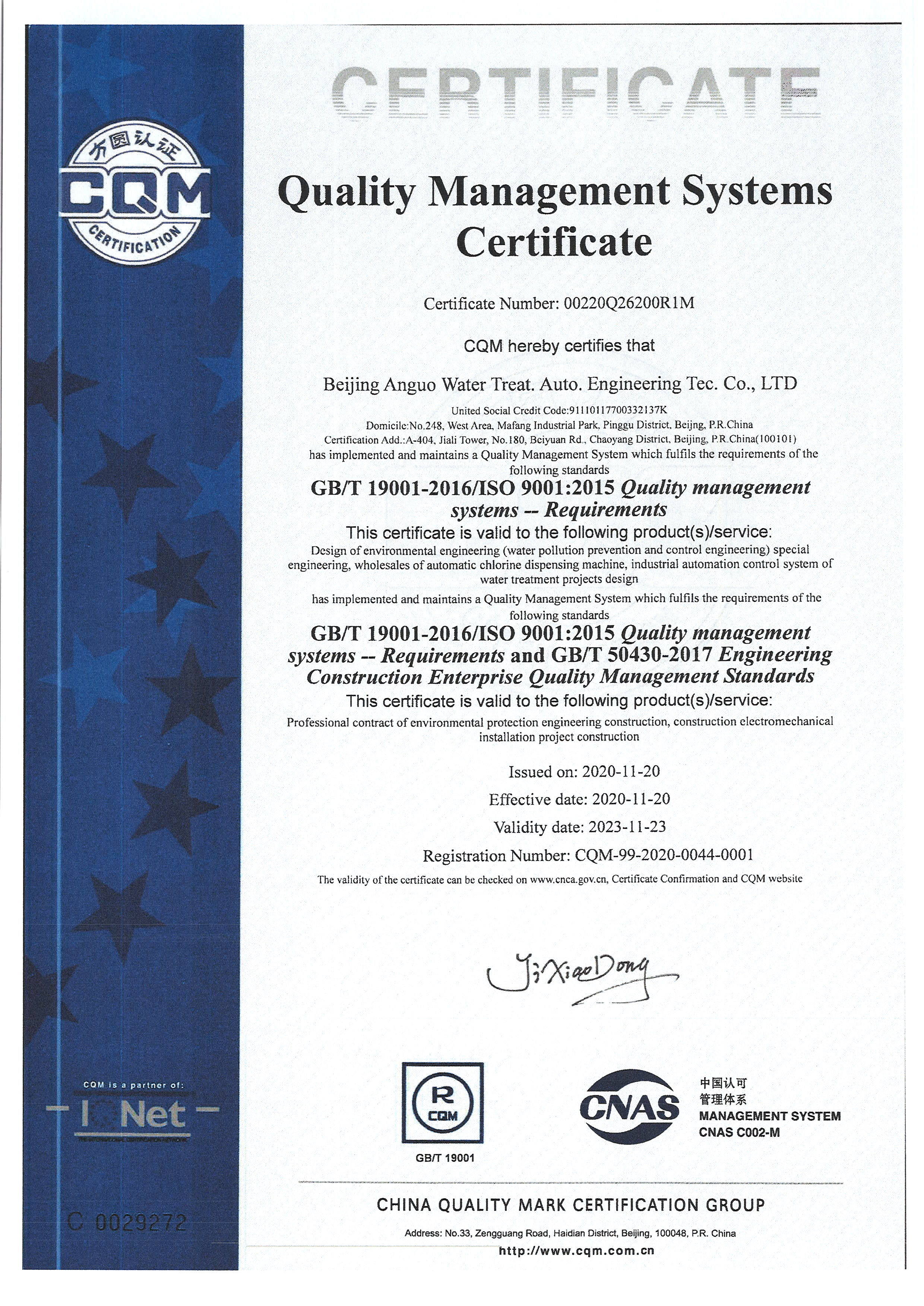 背景安國水道自控工程技術有限公司是注冊在北京市平谷區馬坊工業園區的高新技術企業,是中國水處理行業及自控領域的知名企業,在凈水廠、污水廠、循環水廠的水處理方面擁有國內領先的工藝技術及調試經驗。